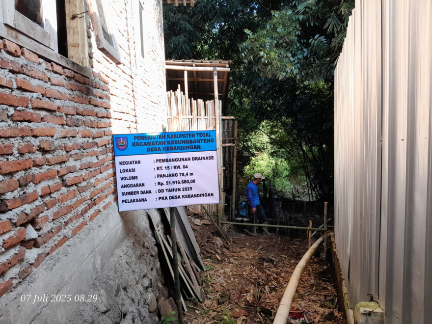 Kepala Desa Kebandingan, Sutrisno, menyampaikan bahwa pembangunan ini merupakan salah satu prioritas pembangunan tahun 2025 yang didanai dari Dana Desa.